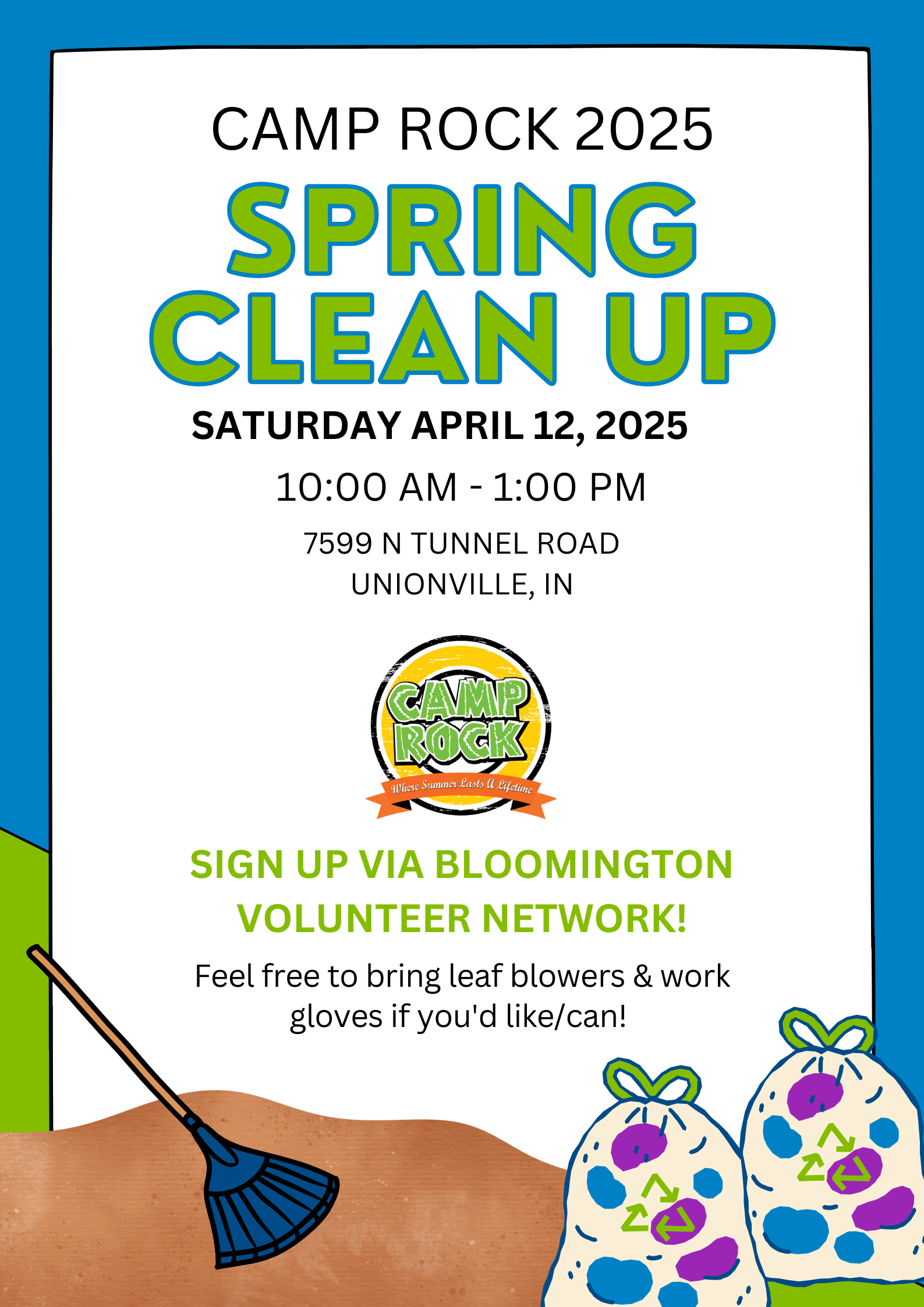 Join us in preparing our beautiful Lake Lemon property for summer camp! We'll be raking leaves, spreading mulch, sanding and staining, and a few other outdoor activities!